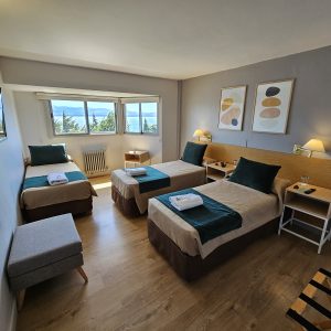 Cuenta con habitaciones con conexión Wi-Fi y con ubicación frente al lago y a las montañas de las cuales se pueden admirar una hermosas postales de Bariloche.
